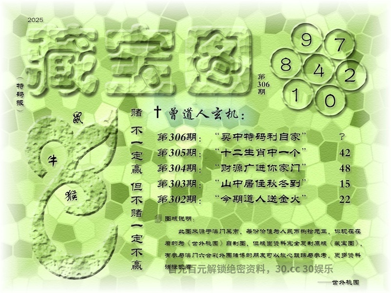| 306期:澳门正版藏宝 【买中特码利自家】 解:买中特码利自家,自家,解肖马牛鸡猪羊狗。 综肖:马牛鸡猪羊狗兔 |